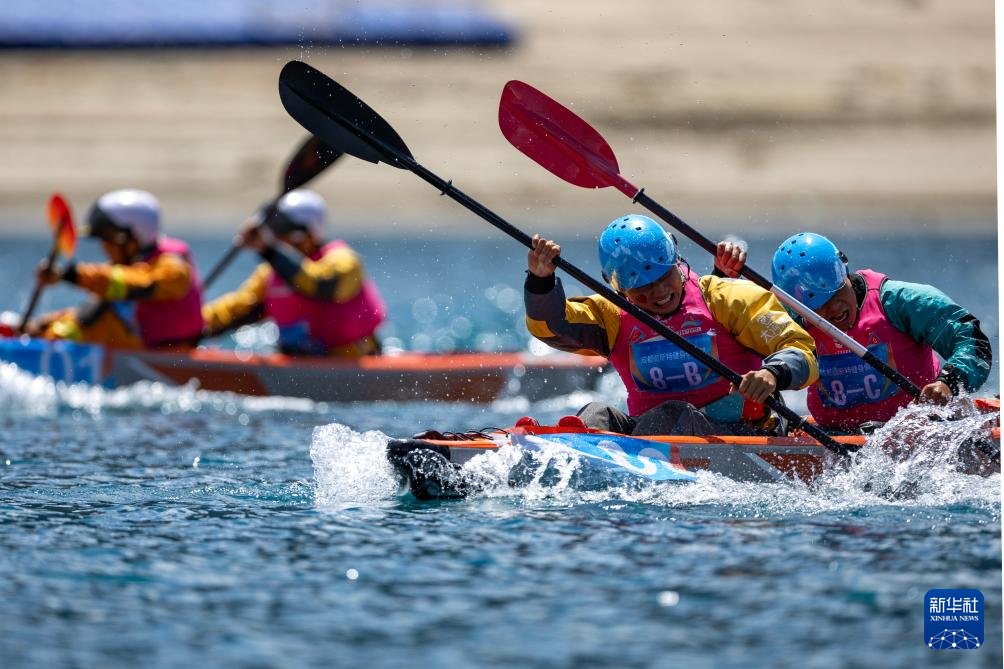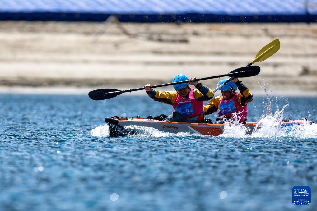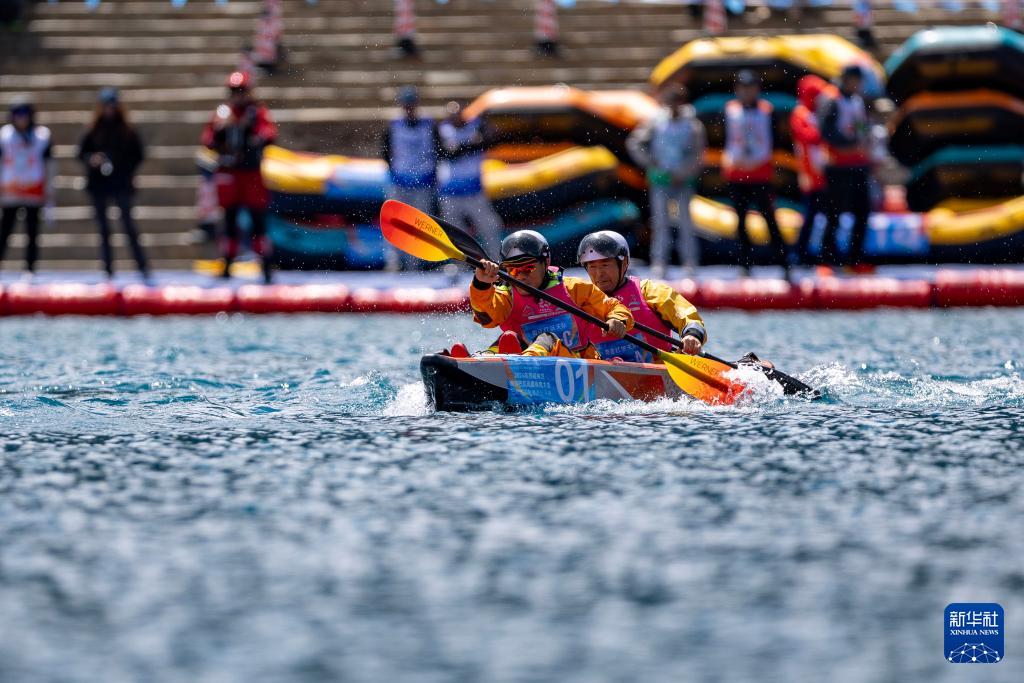 4月20日,選手們在兩人漂流艇競速賽比賽中。新華社記者 孫非 攝