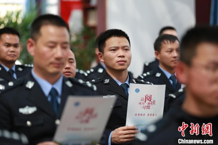 圖為吉隆出入境邊防檢查站參與“古道雄關 書香國門”主題讀書分享會的移民管理警察正在認真聆聽。肖富貴 攝