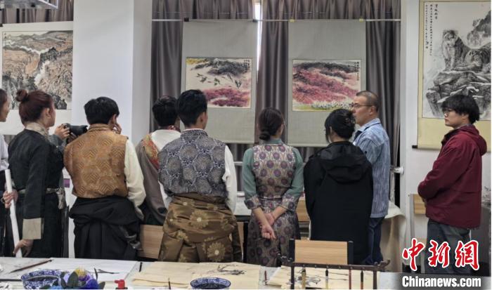 西藏大學(xué)藝術(shù)學(xué)院師生在欣賞美術(shù)作品。西藏大學(xué)藝術(shù)學(xué)院供圖
