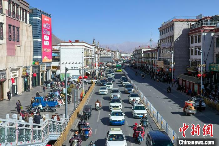 圖為拉薩市北京東路上的車輛。江飛波 攝
