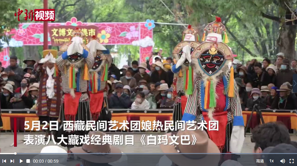 5月2日,西藏民間藝術(shù)團(tuán)娘熱民間藝術(shù)團(tuán)表演八大藏戲經(jīng)典劇目《白瑪文巴》。“五一”假期,“經(jīng)典劇目進(jìn)景區(qū) 特色演出進(jìn)劇院”惠民文藝演出在羅布林卡進(jìn)行,吸引市民游客爭相觀看。藏戲集說唱、表演、歌舞、文學(xué)于一體,有著600多年歷史,被譽(yù)為藏文化的“活化石”。(李林 制作 劉鵬)