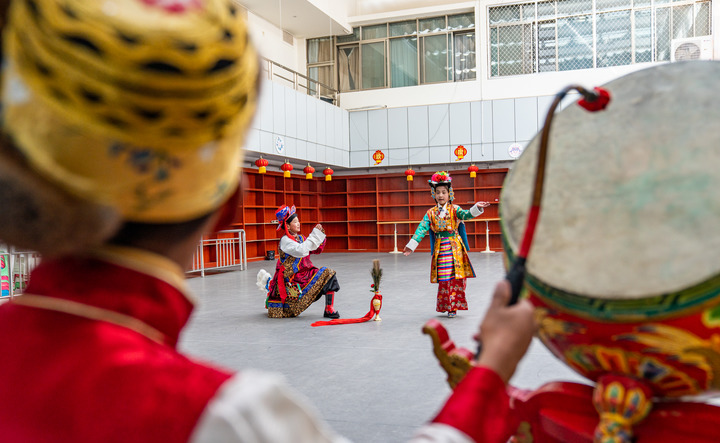 為持續(xù)培養(yǎng)新生力量,自2015年起,西藏自治區(qū)文化和旅游廳引導(dǎo)相關(guān)場(chǎng)館聘請(qǐng)老師免費(fèi)教授藏戲,目前已培養(yǎng)學(xué)員超200名?!?0后”德吉白珍是其中一員。她在劇目《蘇吉尼瑪》中飾演蘇吉尼瑪。憑借出色演出,德吉白珍曾于2022年斬獲第26屆中國(guó)少兒戲曲小梅花薈萃活動(dòng)“小梅花”獎(jiǎng)。
