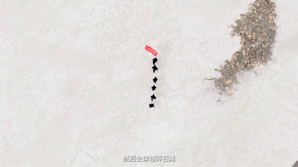 一路上,巡邏隊經(jīng)過了冰塔林、冰川,穿越了碎石灘,“踏上路程的時候是有點緊張和忐忑的,因為感覺其實這路很爛,全是亂石堆,就很害怕自己沒辦法堅持下來,因為從來沒有到過海拔這么高的地方”,新警彭莉緊張地說道。