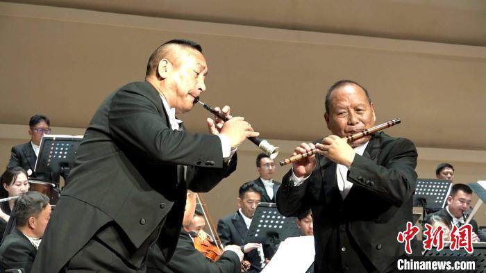 圖為在音樂(lè)會(huì)上嗩吶、笛子與樂(lè)隊(duì)演奏。貢桑拉姆攝