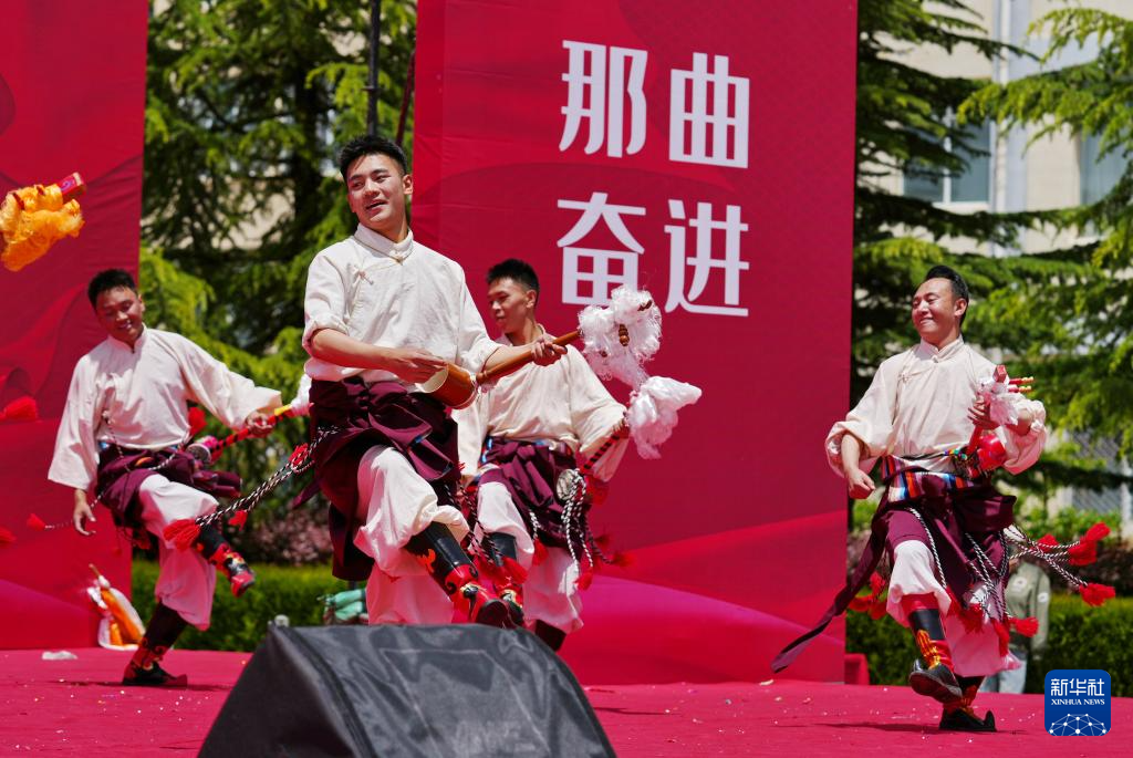 5月12日,在西藏職業(yè)技術(shù)學(xué)院職業(yè)教育活動(dòng)周啟動(dòng)儀式暨比如縣非物質(zhì)文化遺產(chǎn)進(jìn)校園活動(dòng)上,比如縣民族藝術(shù)團(tuán)的演職人員在表演節(jié)目。新華社發(fā)(趙大志攝)