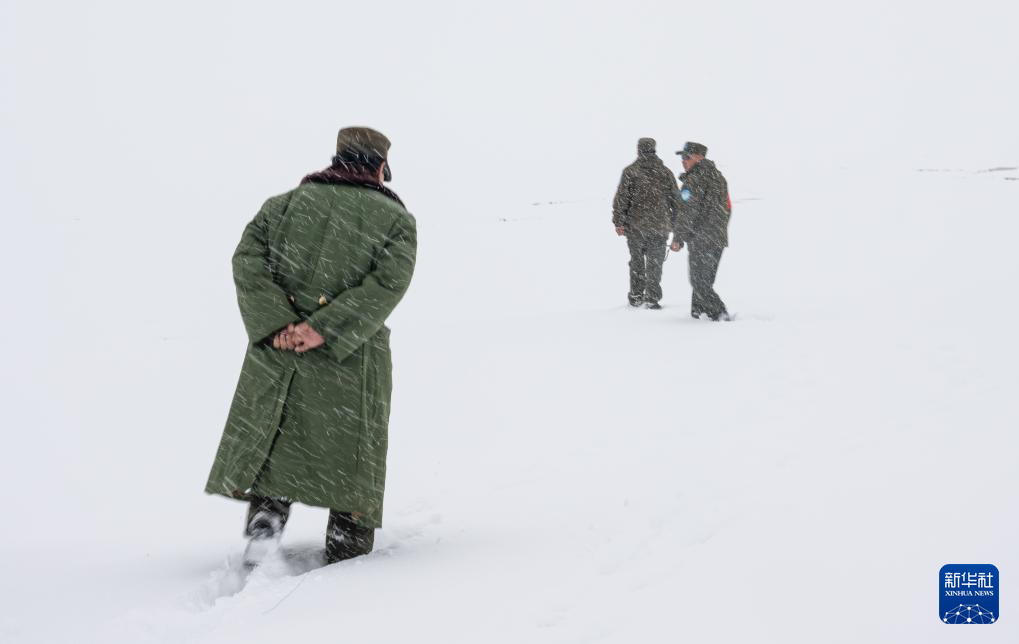 野生動物專業(yè)管護隊員冒著風雪趕到無人區(qū)深處的布查玉管護站(5月7日攝)。新華社記者 姜帆 攝