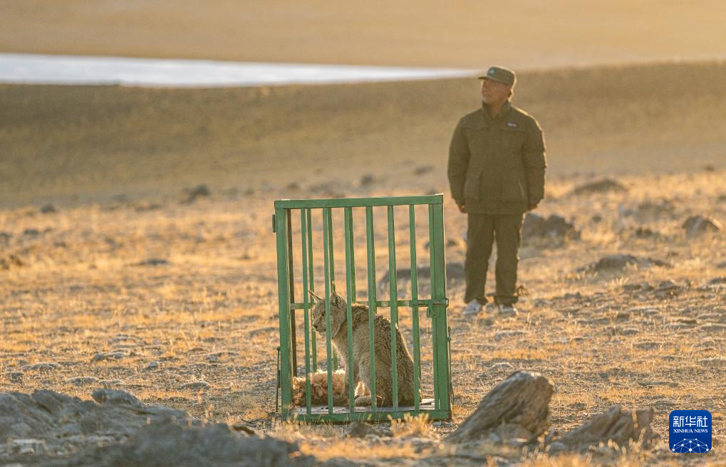 野生動物專業(yè)管護隊員準備將一頭猞猁放歸自然(5月12日攝)。新華社記者 丁增尼達 攝