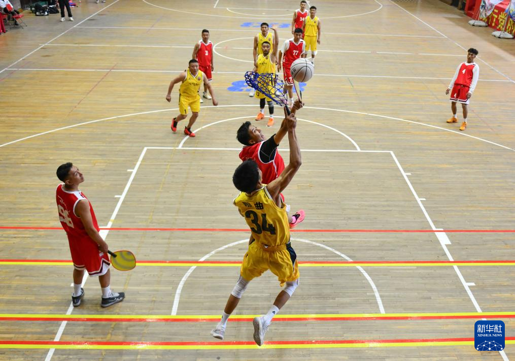 5月14日,山南隊(duì)江濤(左一)在比賽中得分。新華社記者 晉美多吉 攝