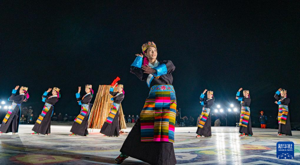 舞蹈演員在納木錯(cuò)開湖篝火晚會(huì)現(xiàn)場表演(5月18日攝)。新華社記者 丁增尼達(dá) 攝