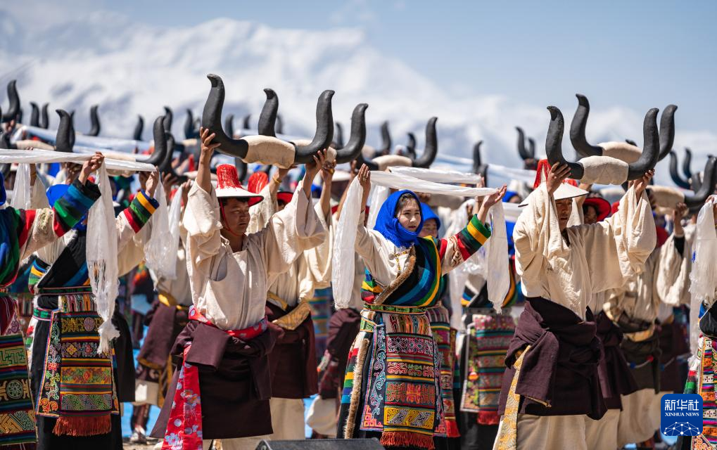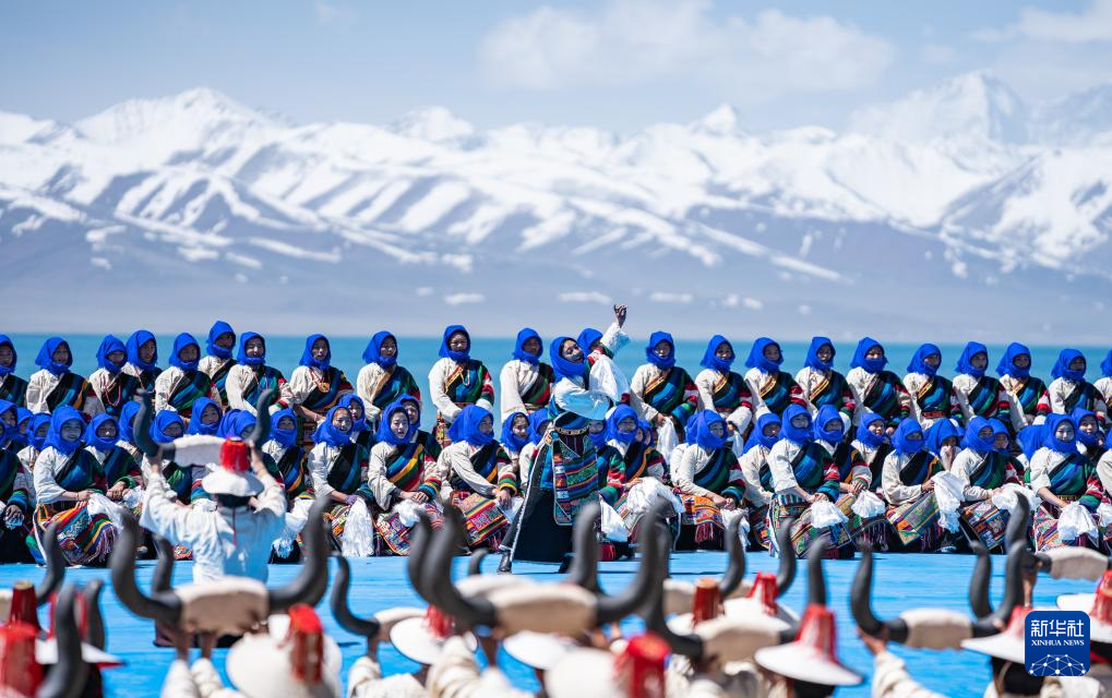 舞蹈演員正在納木錯(cuò)開湖活動(dòng)現(xiàn)場表演(5月19日攝)。新華社記者 丁增尼達(dá) 攝