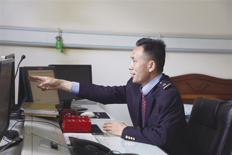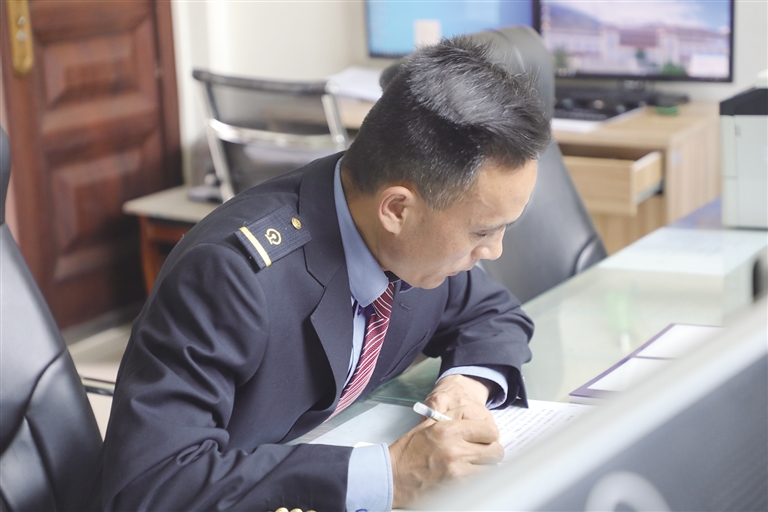 “這里的工作雖然看似單調(diào),實(shí)則責(zé)任很大?!辟R文貴身穿深藍(lán)色的鐵路制服,胸前佩戴著亮閃閃的工牌,顯得精神抖擻。他像一名嚴(yán)謹(jǐn)?shù)膽?zhàn)士,緊盯著操作臺(tái),確認(rèn)信號(hào),口呼手指?!∽鳛檐囌局蛋鄦T,賀文貴每天的任務(wù)主要是監(jiān)視列車進(jìn)路和區(qū)間動(dòng)態(tài),保證行車安全。工作中的他認(rèn)真負(fù)責(zé),嚴(yán)格執(zhí)行標(biāo)準(zhǔn)化作業(yè),他常說(shuō):即使單人值守,該有的程序、作業(yè)步驟一項(xiàng)都不少,作業(yè)標(biāo)準(zhǔn)必須嚴(yán)格執(zhí)行,保證作業(yè)安全。