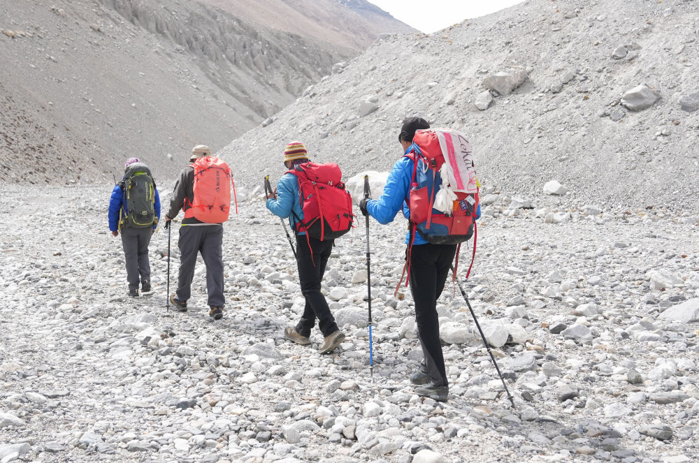 德諾埃爾兄弟和隊(duì)友們一起離開(kāi)珠峰登山大本營(yíng),出發(fā)前往更高海拔的營(yíng)地(5月18日攝)。新華社記者 丁汀 攝