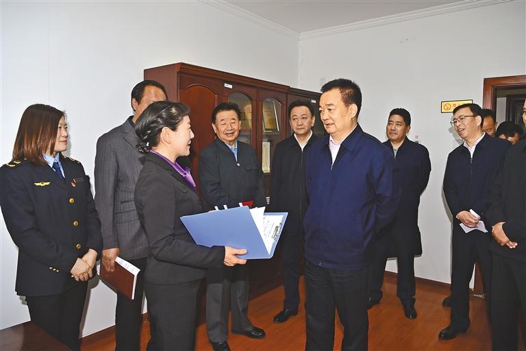 5月29日上午,自治區(qū)黨委書記王君正前往自治區(qū)市場監(jiān)督管理局、自治區(qū)商務廳等單位調研。這是王君正在自治區(qū)商務廳認真聽取全區(qū)商務工作情況介紹。本報記者 旦增西旦 攝