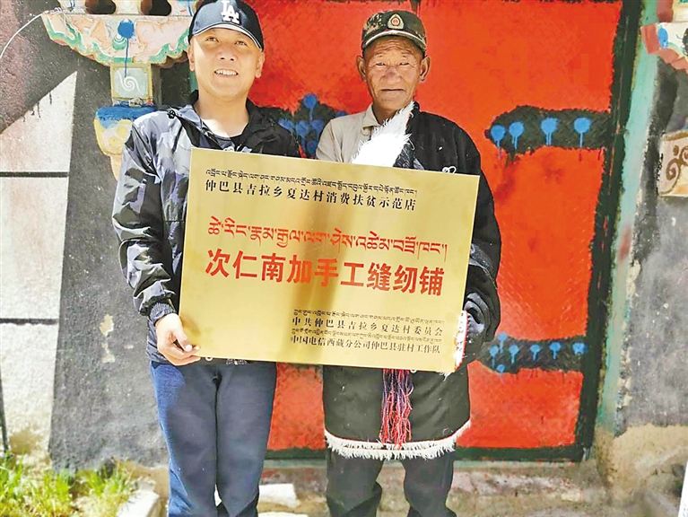 中國電信西藏公司第九批駐村工作隊隊長格桑頓珠協(xié)助建檔立卡戶次仁南加成立了次仁南加手工縫紉鋪。