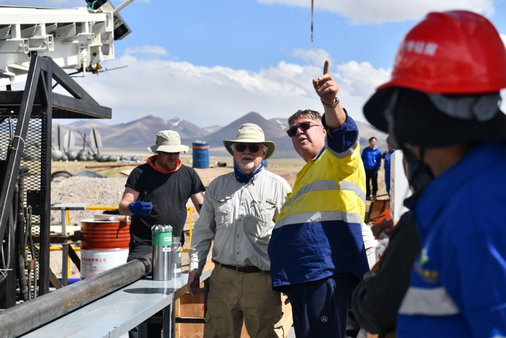 外國(guó)科學(xué)家指導(dǎo)鉆探技術(shù)人員架設(shè)湖泊鉆探平臺(tái)(6月1日攝)。新華社記者晉美多吉 攝