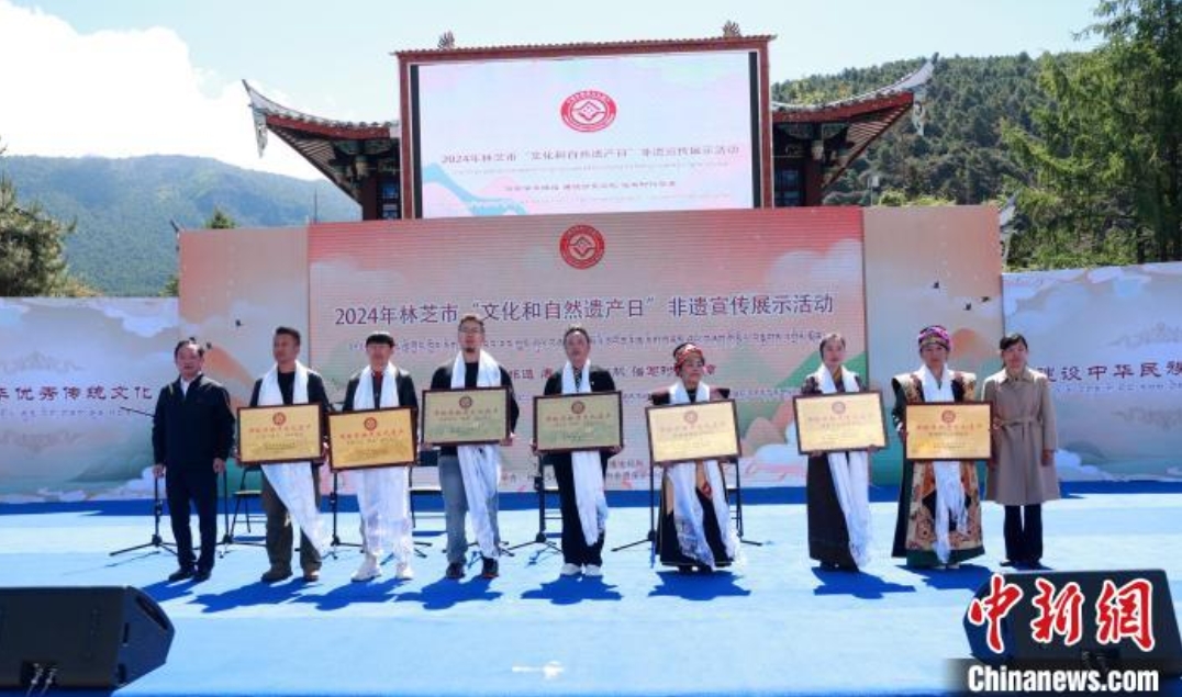 圖為為入選的市級非遺代表性項(xiàng)目授牌。林芝市融媒 供圖