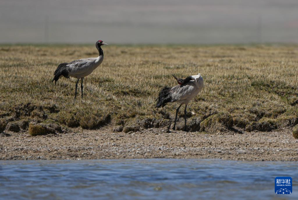 黑頸鶴在濕地孵蛋(6月7日攝)。新華社記者 姜帆 攝
