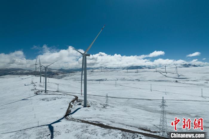 圖為西藏措美哲古風(fēng)電項(xiàng)目一處風(fēng)電機(jī)組。旦增努布攝