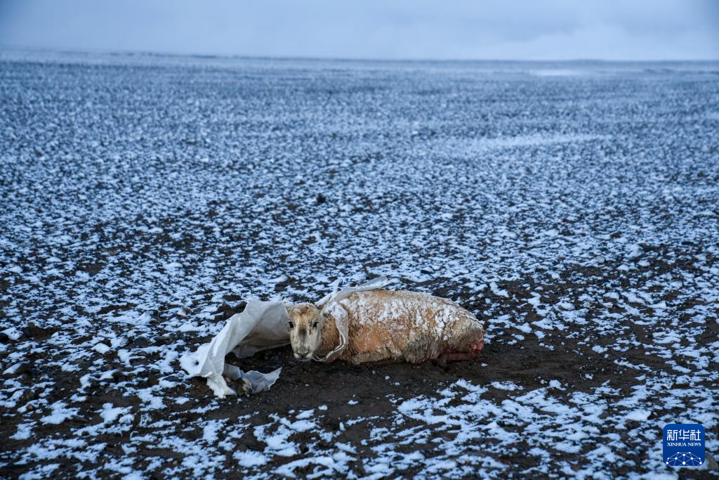 6月15日清晨,在西藏那曲市尼瑪縣境內(nèi)的羌塘國家級(jí)自然保護(hù)區(qū)“無人區(qū)”深處,受傷的母藏羚羊已經(jīng)死去。新華社記者 旦增尼瑪曲珠 攝
