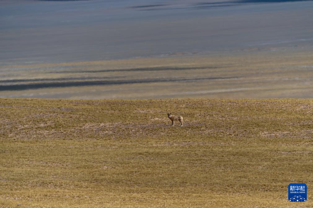 草原上伺機(jī)而動(dòng)的野狼(6月13日攝)。新華社記者 旦增尼瑪曲珠 攝
