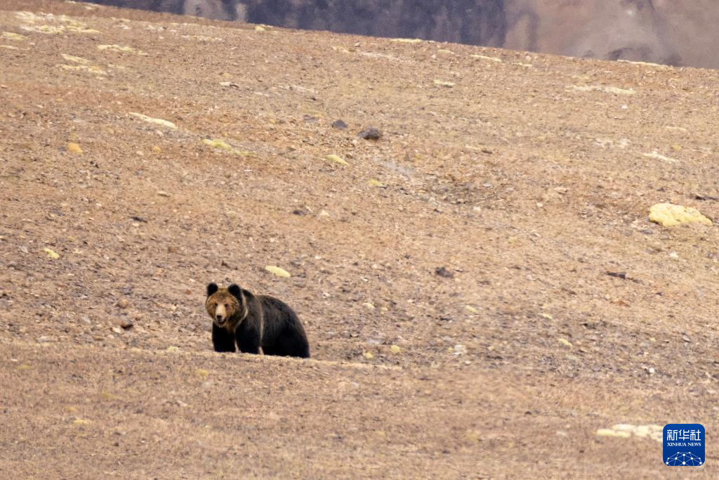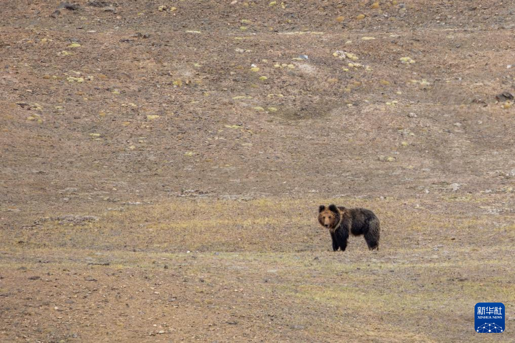 草原上伺機(jī)而動(dòng)的棕熊(6月13日攝)。新華社記者 旦增尼瑪曲珠 攝