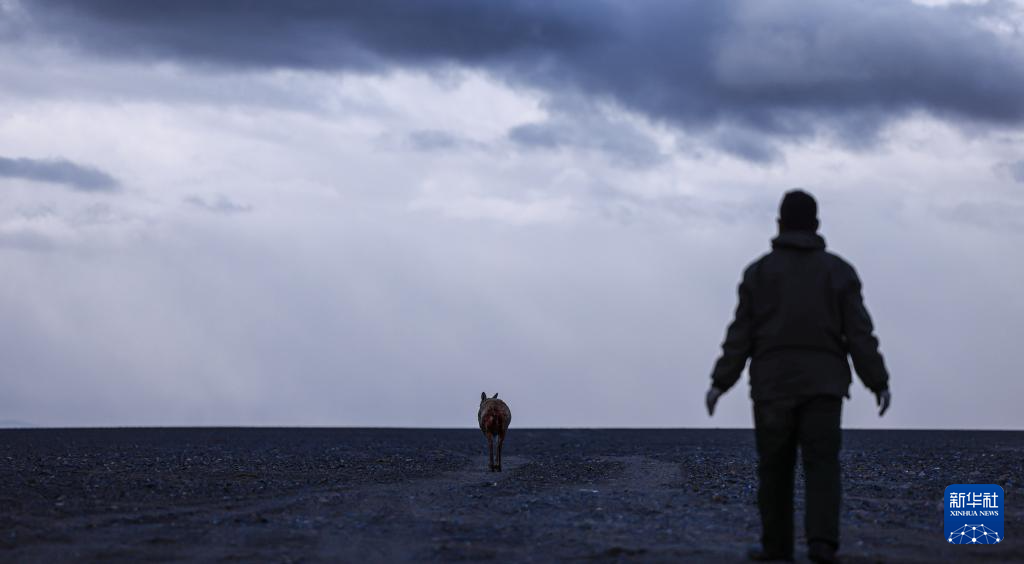羌塘國家級(jí)自然保護(hù)區(qū)的野保員上前查看受傷的母藏羚羊(6月14日攝)。新華社發(fā)(旦增攝)
