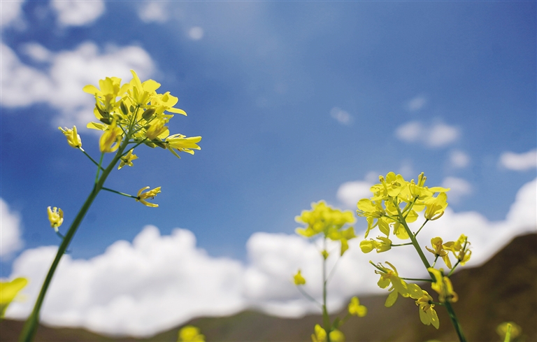 西藏的春天可以欣賞桃花,夏天可以欣賞什么花?那當(dāng)然是油菜花。近期,西藏各地迎來(lái)了油菜花盛開(kāi)的季節(jié)。行走在夏日的農(nóng)田里,金黃色的油菜花給綠意盎然的農(nóng)田增添了幾分色彩。放眼望去,在藍(lán)天白云的映襯下,油菜花海如同金黃色的毯子般鋪展開(kāi)來(lái),花海在微風(fēng)中輕聲搖曳,與一旁的道路、錯(cuò)落有致的村居共同構(gòu)成了一幅和諧美麗的田園風(fēng)景圖。