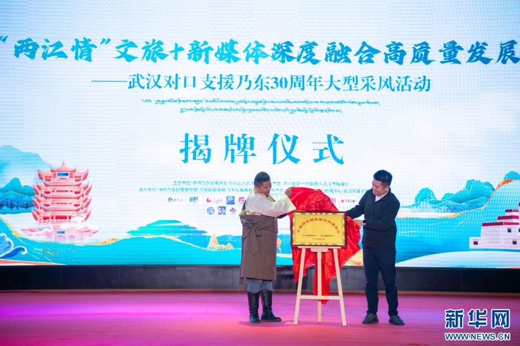 6月20日,啟動儀式現(xiàn)場,洪山區(qū)融媒體中心與乃東區(qū)融媒體中心共同揭牌中西部全媒體融合共建單位。新華網(wǎng) 旦增努布 攝