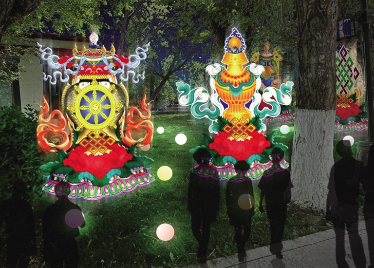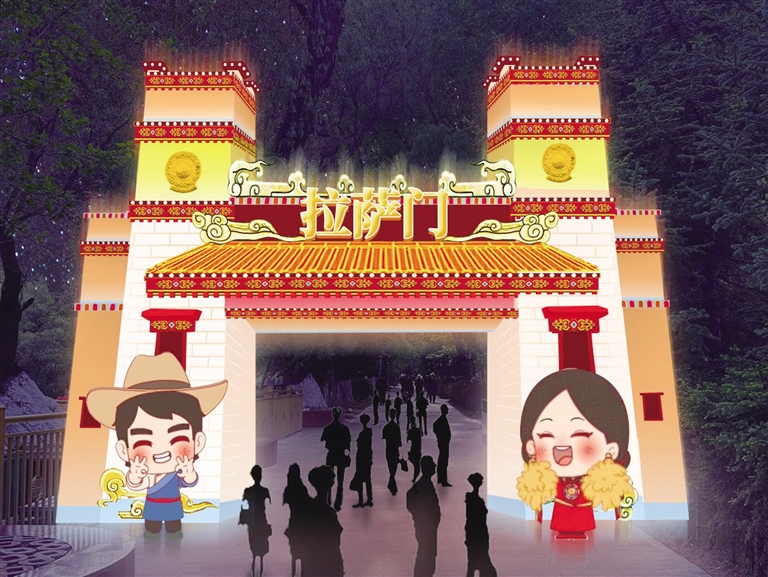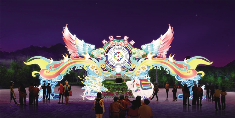 記者了解到,“點(diǎn)亮拉薩——秦淮燈會”在宗角祿康公園東門設(shè)置大型燈組,搭配拉薩的吉祥物牦牛、江蘇的吉祥物麋鹿,燈組用拉薩經(jīng)典配色,搭建飄逸的彩帶雙翼,表達(dá)“蘇拉一家親,攜手向未來”的寓意。在公園走廊里、草坪上,還用精致的現(xiàn)代光影作品,安排展示江南煙雨、小橋流水、青磚黛瓦、梅瓶明珠、桃花仙鶴、油傘折扇、上元燈彩等富有江蘇特色的美景雅韻以及具有拉薩特色的建筑和文化精品。