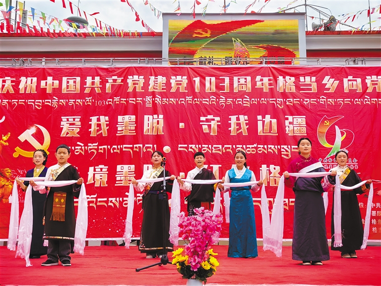 圖為“愛我墨脫 守我邊疆”慶祝中國共產(chǎn)黨建黨103周年文藝匯演現(xiàn)場。記者 王敏 通訊員 郎玲 攝