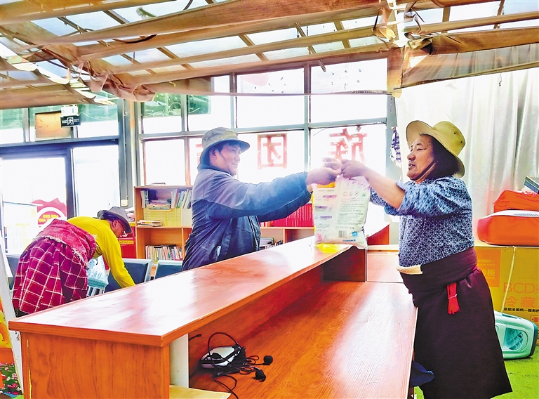 圖為改則縣洞措鄉(xiāng)次日果來村村民在積分超市兌換生活物資。記者 洛桑旦增 攝