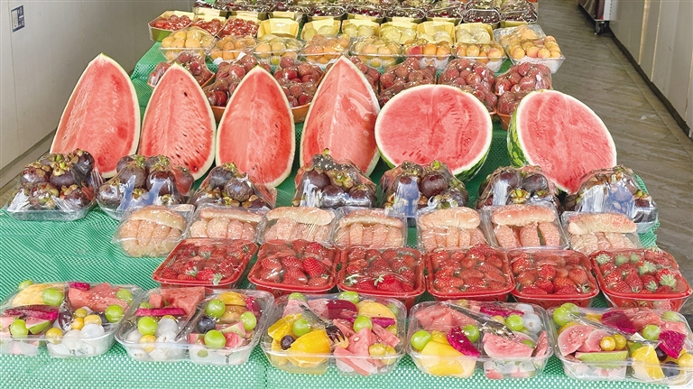 線下時令水果銷售火熱,線上選購水果的方式也越來越受到消費者的歡迎。記者打開美團外賣App搜索水果,數(shù)十家水果店出現(xiàn)在搜索列表中,每家水果店出售的時令水果種類豐富、價格從幾元到幾十元不等,而且不少店鋪還出售特價的盒裝鮮切水果,例如200g鮮切西瓜加哈密瓜雙拼盒售價為3.2元、500g鮮切麒麟西瓜售價為19.8元、250g繽紛混合水果切售價為11.9元。“在網(wǎng)上買水果很方便,不用自己出門選購,在家下單就行了?!笔忻袂空f,“家里只有我一個人,水果買多了也吃不完,買點盒裝的鮮切水果,種類豐富,價錢也便宜。”