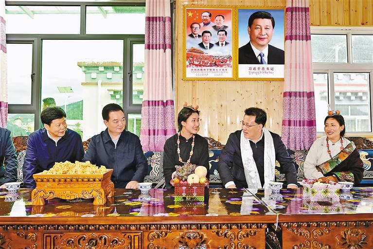 7月8日至10日,重慶市代表團來藏考察。這是代表團在昌都市類烏齊縣扎西貢村美麗鄉(xiāng)村示范點與基層群眾親切交流。 記者 旦增西旦 攝
