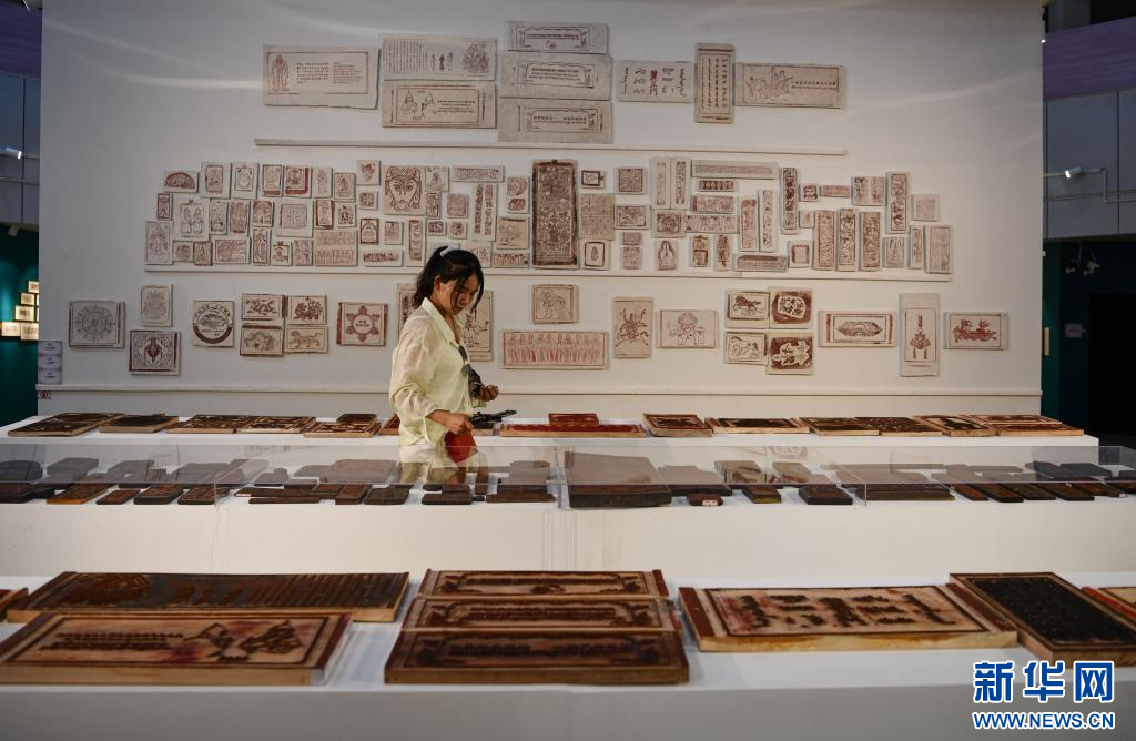 7月19日,工作人員在展示體驗區(qū)的雕版及印刷品。