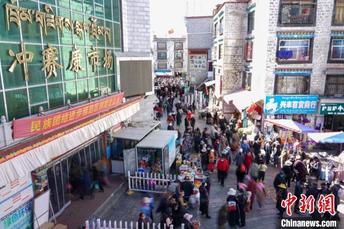 資料圖為拉薩沖賽康市場(chǎng)周邊人流、商戶(hù)云集,該市場(chǎng)是西藏最大的傳統(tǒng)百貨市場(chǎng)之一。