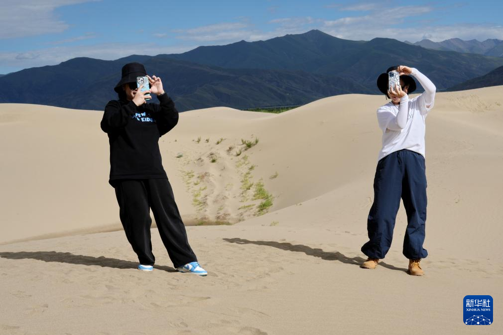 游客在扎囊國(guó)家沙漠公園里拍照(7月30日攝)。新華社記者 張汝鋒 攝