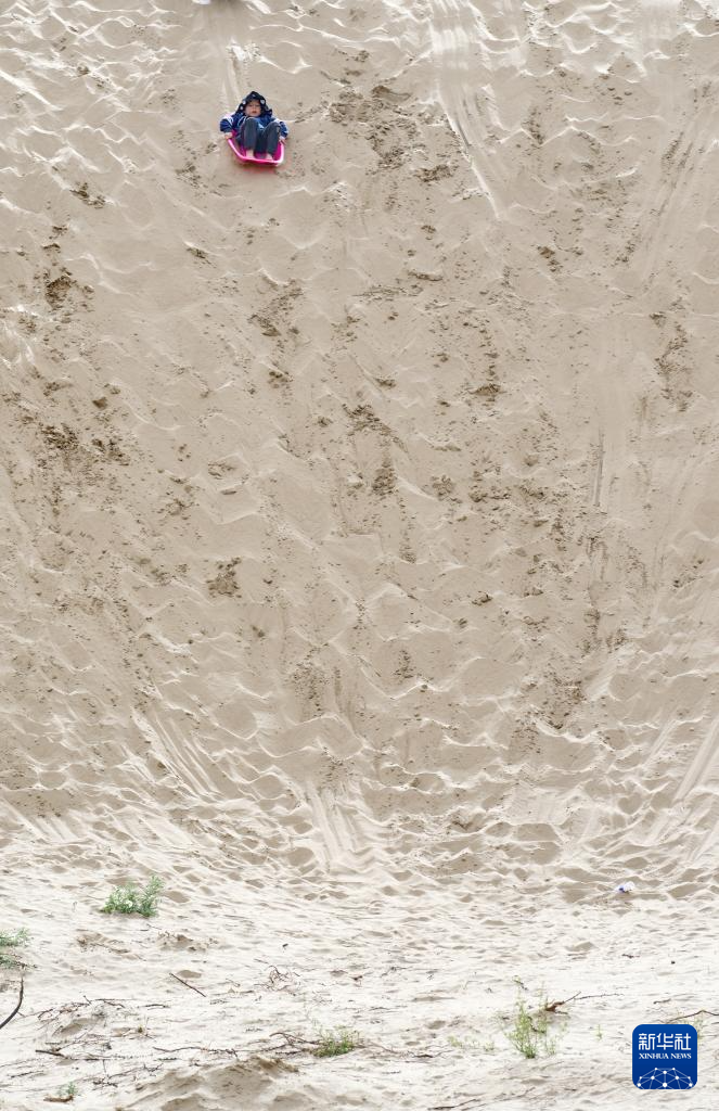 小朋友在扎囊國(guó)家沙漠公園里滑沙(7月30日攝)。新華社記者 張汝鋒 攝