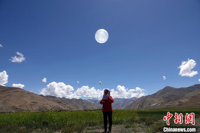 8月1日,作為二次青藏科考一項(xiàng)重要組成部分,珠峰地區(qū)首次開展航空平臺(tái)水-熱-碳通量觀測試驗(yàn)正式啟動(dòng),圖為科考隊(duì)員施放觀測氣球。中新網(wǎng)記者 孫自法 攝