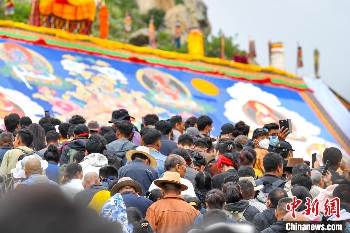 記者跟隨信眾和游客沿著山道緩緩前行,共同目睹那震撼人心的展佛儀式。當巨大的釋迦牟尼佛像唐卡徐徐展開,信眾們向巨幅釋迦牟尼唐卡拋出寓意吉祥的哈達,雙手合十,眼中滿是敬畏與虔誠,口中念念有詞,誠摯地祈禱著風調(diào)雨順、幸福安康。