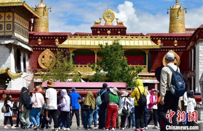 圖為9月7日游客在大昭寺廣場(chǎng)游覽。中新社記者 李林 攝