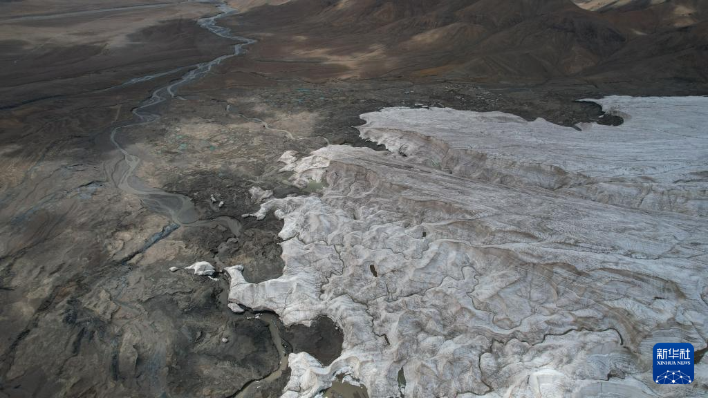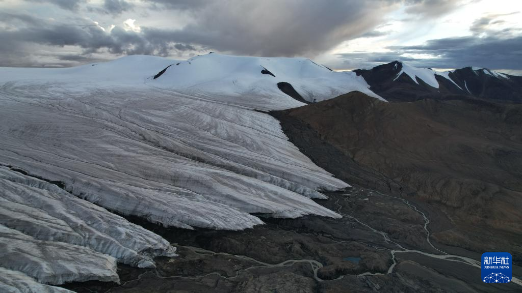 這是9月2日拍攝的普若崗日冰原以及冰川消融形成的徑流。新華社記者 姜帆 攝