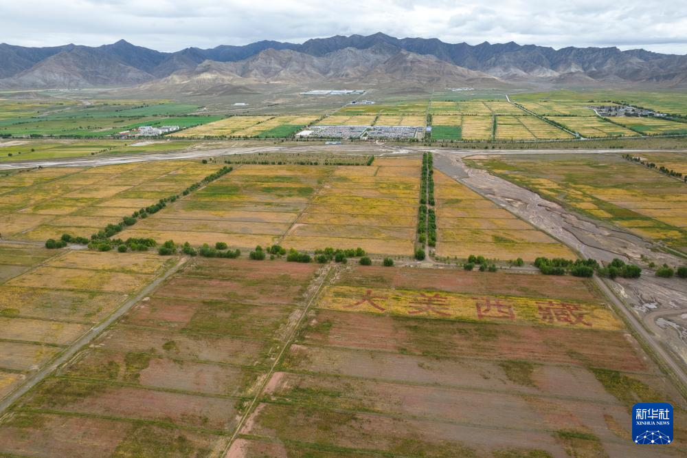 這是在西藏日喀則市薩迦縣扯休鄉(xiāng)拍攝的高原藜麥種植基地(無人機(jī)照片,9月4日攝)。新華社記者 孫瑞博 攝