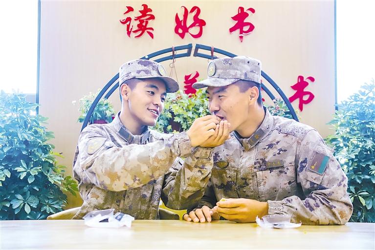 圖為西藏阿里軍分區(qū)某邊防團(tuán)官兵分享月餅。 記者 次仁平措 通訊員 劉曉東 位龍剛 攝