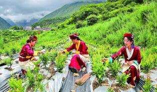 西藏錯(cuò)那市勒布溝村民在采摘莓茶。新華社發(fā)