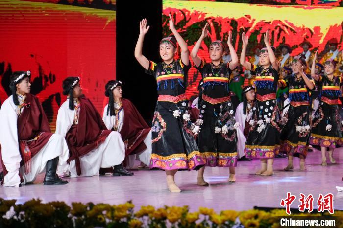 9月23日晚,西藏自治區(qū)首屆殘疾人文藝匯演在拉薩開演,來自西藏各市地的聽障、視障以及肢體殘疾群體紛紛登上舞臺(tái)一展風(fēng)姿,舞蹈、歌曲、手語等節(jié)目輪番上陣。圖為當(dāng)晚演出現(xiàn)場,拉薩特校學(xué)生卓瑪拉姆作為領(lǐng)舞展現(xiàn)動(dòng)人舞姿。記者 江飛波 攝