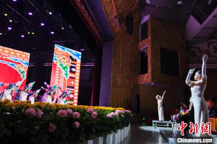 9月23日晚,西藏自治區(qū)首屆殘疾人文藝匯演在拉薩開演,來自西藏各市地的聽障、視障以及肢體殘疾群體紛紛登上舞臺(tái)一展風(fēng)姿,舞蹈、歌曲、手語等節(jié)目輪番上陣。圖為當(dāng)晚演出現(xiàn)場,孩子們和手語指揮老師相互配合。記者 江飛波 攝
