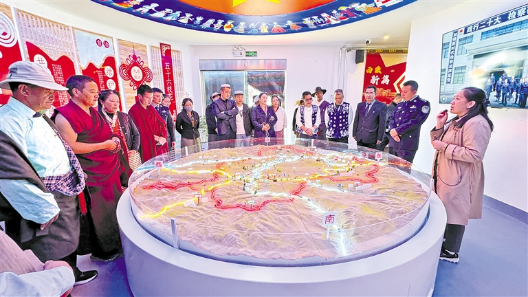 9月14日,拉孜縣曲下鎮(zhèn)以鑄牢中華民族共同體意識為主線,舉辦首屆“格桑花開石榴紅·凝心鑄魂新征程”運動會暨“迎中秋、慶團結”茶話會。 圖為各民族群眾代表參觀拉孜縣鑄牢中華民族共同體意識教育館。