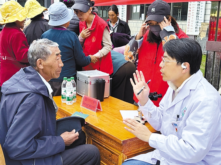 9月15日,當吉林省專家團的車隊剛剛駛進鄉(xiāng)衛(wèi)生院,早已等候的村民熱烈地討論著篩查和治病的事情,上演了一場援藏醫(yī)生與藏族群眾之間的民族團結溫馨場面。