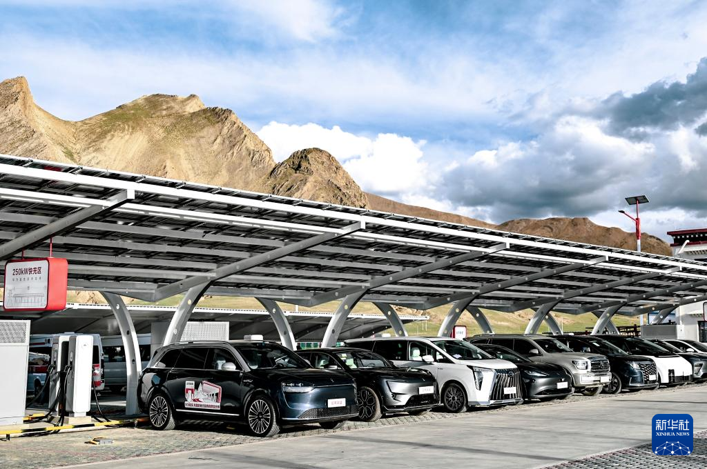 9月2日拍攝的日喀則市珠穆朗瑪國家公園北大門停車場內(nèi)的珠峰光儲液冷超充站。新華社發(fā)