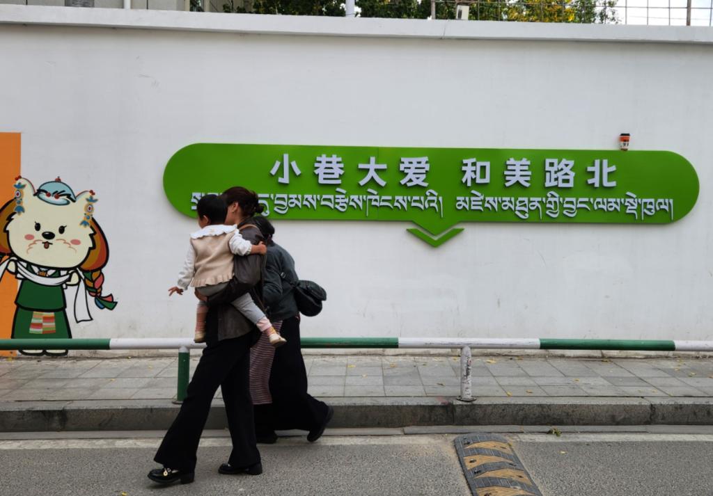 配合路政部門把洽瑪崗路改為單行道,讓街道靜下來;協(xié)同三大運(yùn)營(yíng)商,把街上縱橫交錯(cuò)的“飛線”收進(jìn)沿街橋架,還行人一片藍(lán)天;對(duì)接專業(yè)設(shè)計(jì)團(tuán)隊(duì),以本地犬種拉薩阿普索犬設(shè)計(jì)社區(qū)IP形象“嘎嘎”(意為快樂),街角的墻繪、樹上的引導(dǎo)牌、商戶的門臉上都能看到這只可愛的小狗……社工旦增晉美對(duì)社區(qū)的變化如數(shù)家珍。